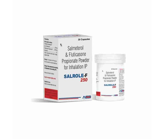 Composition : Fluticasone Propionate I.p 250 + Salmeterol Xinafoate I.p 50 Packing : 30`s Type : 1*15 Box Packing Detail:-Fluticasone + Formoterol in ROFROLE F 250 Tablet helps widen airways, reduce inflammation, and improve respiratory comfort.