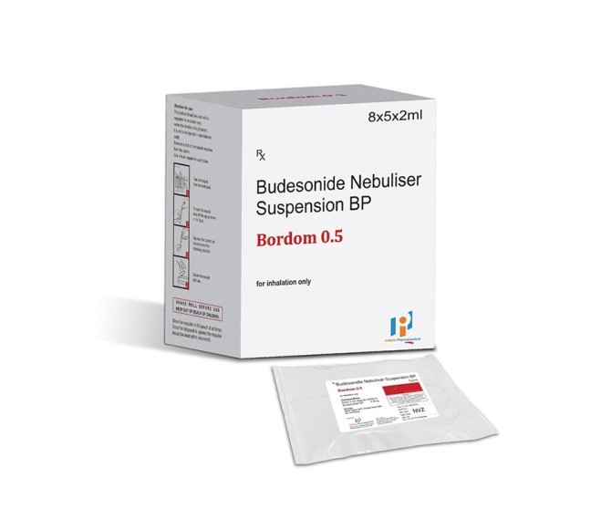Composition : Budesonide 0.5 Mg Packing : 2 ml Type : 8*5*2 ML Detail:-Bordom 0.5 Respules by Indizen Pharmaceutical contain Budesonide to support effective management of respiratory conditions and improve breathing comfort.