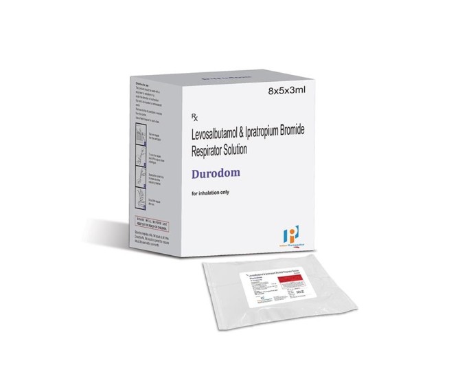 Composition : Levosalbutamol 1.25 Mg + Ipratropium 500 Mcg Packing : 3 ml Type : 8*5*3 ml Detail:-Durodom Respules: Levosalbutamol 1.25 mg + Ipratropium 500 mcg for asthma & COPD relief.