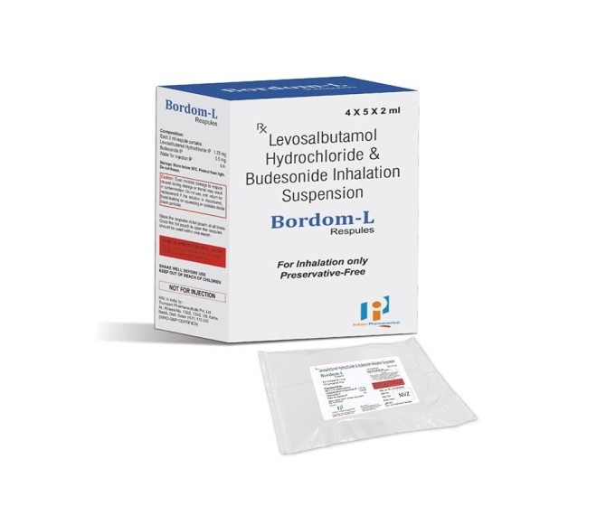 Composition : Levosalbutamol 1.25 Mg + Budesonide Ip 0.5 Mg Packing : 2 ml Type : 4*5*2 ml Detail-Bordom-L Respules by Indizen Pharmaceutical are formulated to support effective respiratory management and improve breathing comfort.