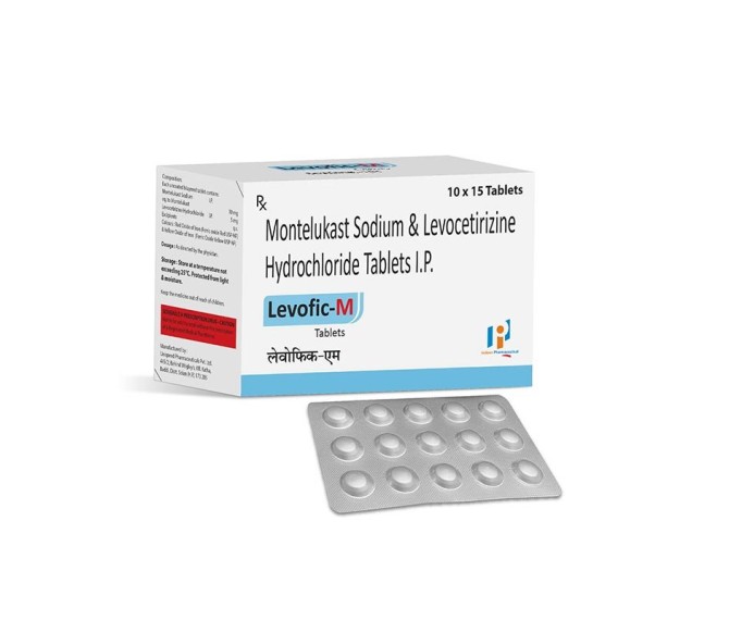 Composition : Levocetirizine 5mg + Montelukast 10 Mg Packing : 10*15 Type : Alu Alu Detail:-Levofic‑M combines Levofloxacin & Montelukast for effective management of bacterial infections and respiratory conditions.