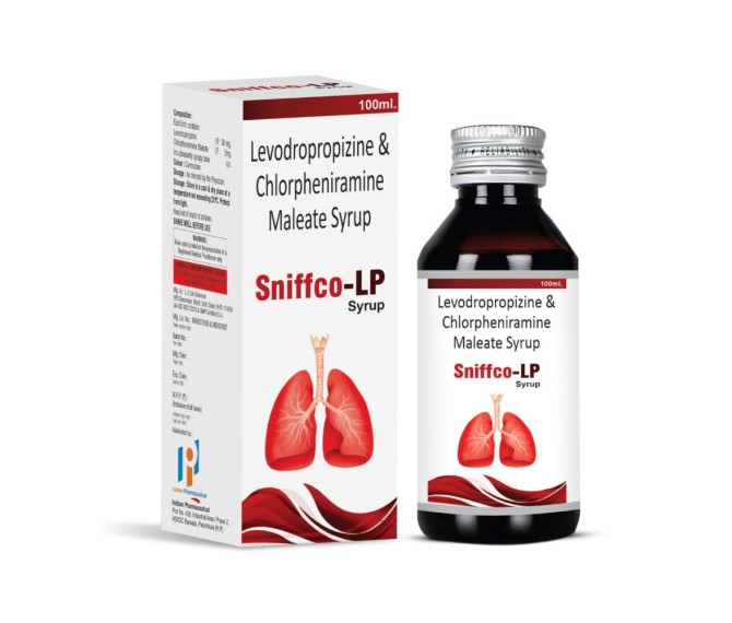 Product Name:-SNIFFCO LP SUGAR FREE Composition:- LEVODROPROPIZINE 30 MG/5ML + CPM MALEATE 2MG /5ML Packing:-100ML Type:-MONO CARTOON Detail:-SNIFFCO LP Sugar Free provides effective relief from dry cough and throat irritation. Sugar-free formula suitable for diabetic patients. Gentle, safe, and fast-acting cough relief.