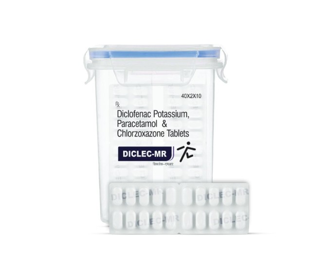 Composition : Diclofenac Potassium 50 Mg + Pcm 325 Mg + Chlorzoxazone 250 Mg Packing : 40*2*10 Type : Blister Detail:- Diclofenac Potassium 50 Mg + Pcm 325 Mg + Chlorzoxazone is used in the reduction of musculoskeletal pain due to tissue injury, resolution of post surgery