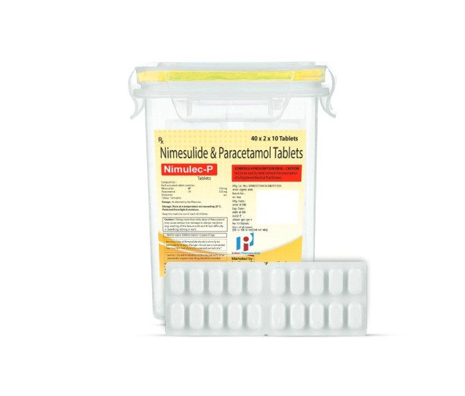 Composition : Nimesulide 100 Mg + Paracetamol 325 Mg Packing : 50*2*10 Type : Blister Detail:-Nimesulide 100 Mg + Paracetamol 325 Mg Tablets is used for pain relief. It relieves pain in conditions like headache, mild migraine, muscle pain, dental pain