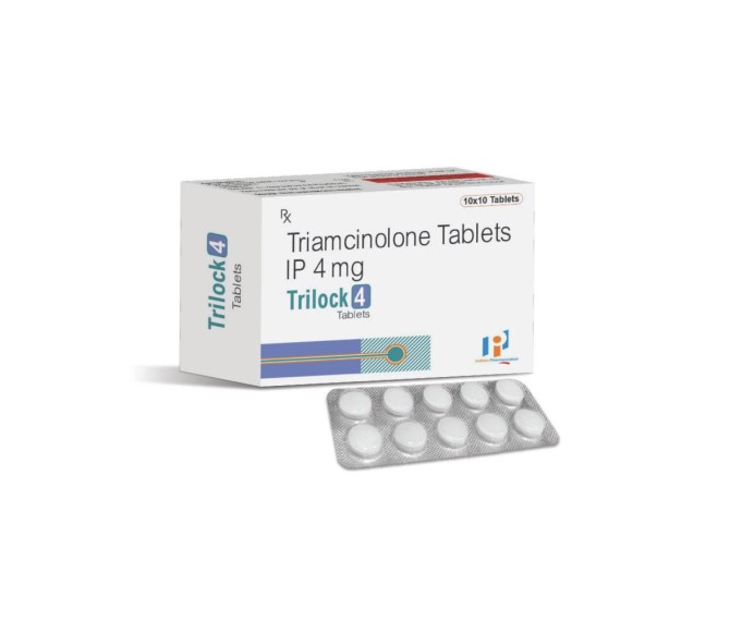Product Name:-TRILOCK 4 Composition:- TRIAMCINOLONE 4 MG Packing:-10*10 Type:-BLISTER Detail:-TRILOCK 4 helps relieve allergy symptoms such as itching, rashes, sneezing, and watery eyes, providing effective anti-allergic support.