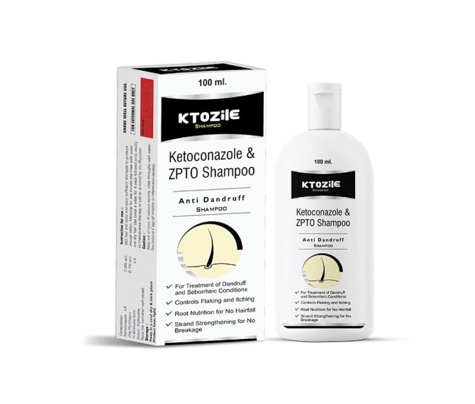 Composition : Ketoconazole 2% + Zpto 1% Shampoo Packing : 100 Ml Type : Mono Pack Detail:-KTOZILE Shampoo is a medicated anti‑dandruff shampoo containing ketoconazole and zinc pyrithione, effective against dandruff, seborrheic dermatitis and scalp fungal infections