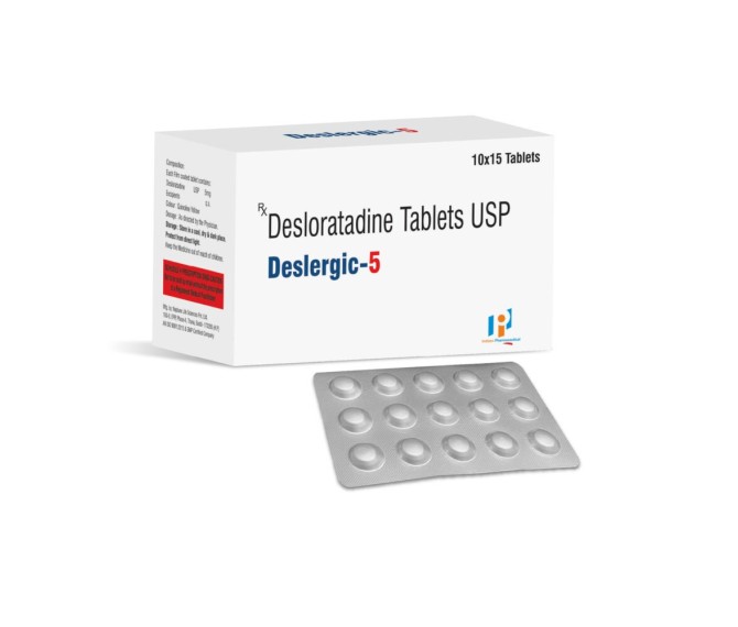 Product Name:-DESLERGIC 5 Composition:- DESLORATADINE 5 MG Packing:-10*15 Type:-ALU ALU Detail:-DESLERGIC 5 Tablet helps relieve allergy symptoms and supports respiratory comfort. Trusted quality by Indizen Pharmaceutical.