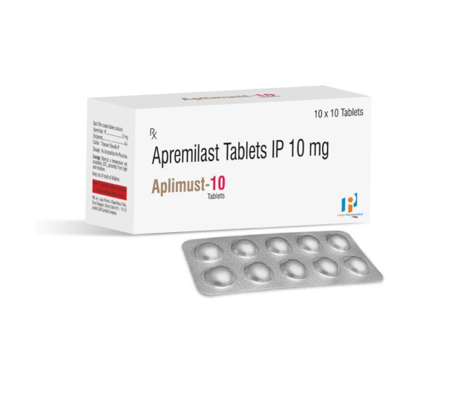 Product Name:-APLIMUST 10 Composition:- APREMILAST 10 MG Packing:-10*10 Type:-ALU ALU Detail:- APLIMUST 10 Tablet supports immune health. Quality formulation by Indizen Pharmaceutical.