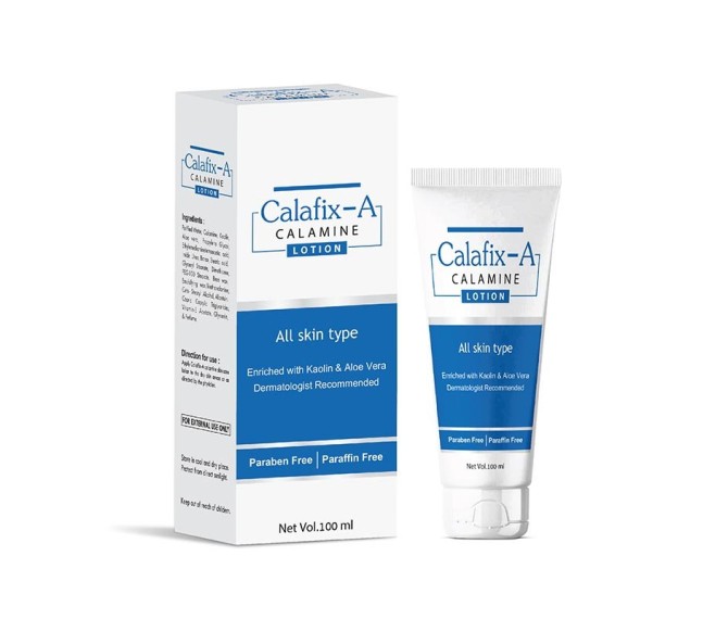 Composition : CALAMINE 8.0% W/W , ALOEVERA GEL 10% W/W, LIGHT LIQUID PARAFFIN 10.0% LOTION Packing : 100 ML Type : Mono Pack Detail:-Indizen Pharma Calafix A – A soothing skin lotion with calamine and aloe vera that relieves itching, rashes, and irritation while keeping skin cool and calm.