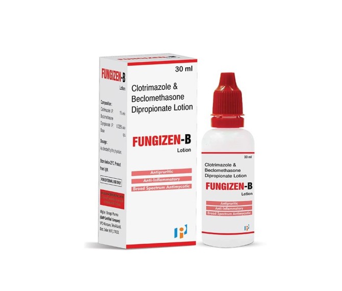 Composition : Beclomethasone Dipropionate 0.025% + Clotrimazole 1.0% Packing : 30 ML Type : Mono Pack Detail:-Fungizen B Lotion – Fast antifungal and antibacterial relief for healthy, irritation-free skin