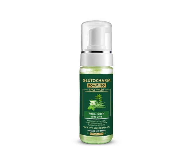 Composition : SODIUM SURCOSINATE , ALOEVERA EXT , NEEM EXT , TULSI EXT , SALISYLIC ACID , CAPB , GLYCERINE , SOD. GLUCONATE , GLYCOLIC ACID . Packing : 150 ML Type : Mono Pack Detail:- Glutocharm Foaming Face Wash – Deep cleans pores, removes impurities & oil for fresh, clear, and glowing skin | Indizen Pharma.
