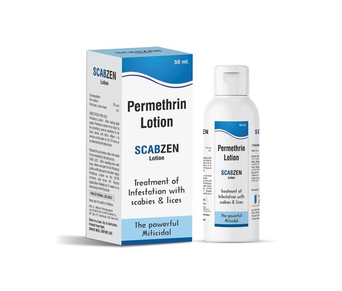 Composition : Permethrin Lotion 50 Ml 5% Packing : 50 ML Type : Mono Pack Detail:-Scabzen by Indizen Pharma – provides fast relief from scabies and skin irritation, soothes itching, and helps restore healthy, comfortable skin