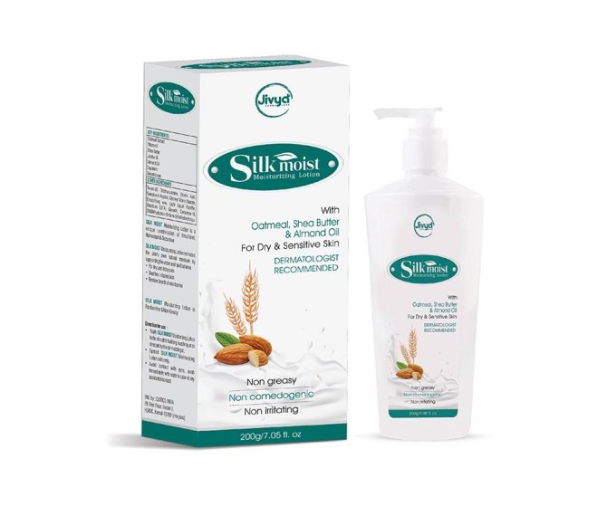 Composition : Oatmeal Extract, Vitamin E, Shea Butter, Jojoba Oil, Almond Oil, Squalene , Dimethicone. Packing : 100 G. Type : Mono Pack Detail:-Silk Moist Moisturizing Lotion by Indizen Pharma – deeply hydrates, softens, and nourishes dry skin, leaving it smooth, supple, and naturally radiant
