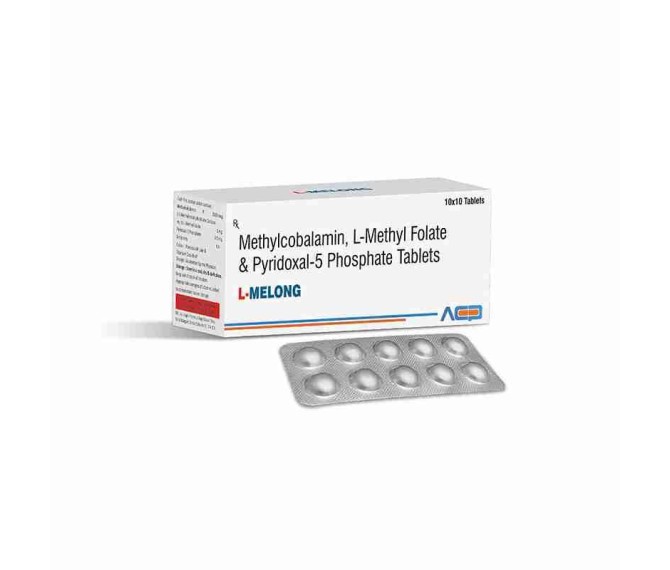 Composition : L-methyl Folate 1 Mg + Methylcobalamin 1500 Mcg + Pyridoxal 5 + Phosphate 0.5 Mg Packing : 10*10 Type : Alu Alu Detail:-L-Melong tablets with L-Methionine & L-Cysteine support liver health and detoxification. Quality amino acid supplement by Asto Care Pharma.