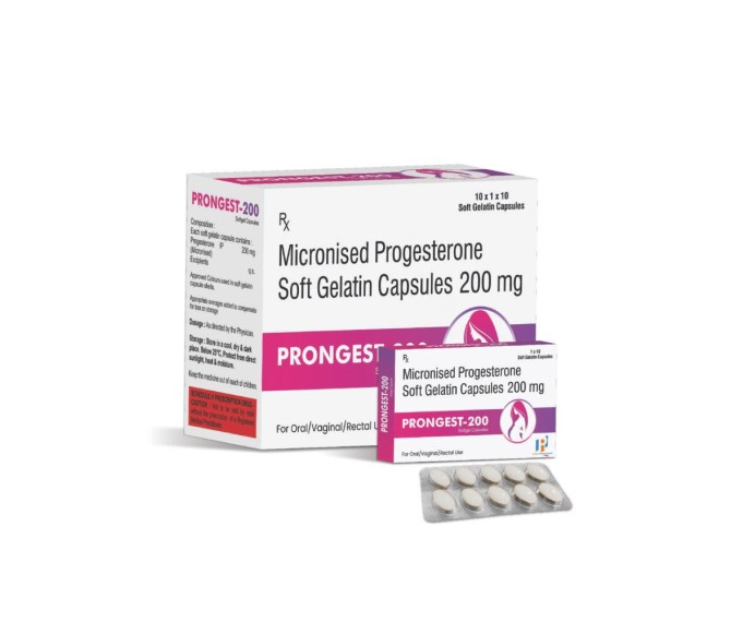 Product Name:-PRONGEST 200 SOFTGEL Composition:- PROGESTERON 200 MG SOFT GELATINE Packing:-10*1*10 Type:-BLISTER Detail:- PRONGEST 200 Softgel by Indizen Pharmaceutical supports progesterone therapy and women’s hormonal health. Trusted quality formulation.