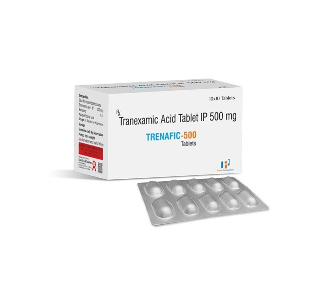 Composition : Tranexamic Acid 500 Mg Packing : 10*10 Type : Alu Alu Detail:-TRENAFIC 500 by Indizen Pharma helps control excessive bleeding during menstruation and supports the management of bleeding disorders effectively.