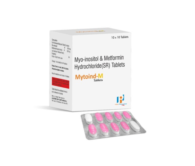 Composition : Myoinositol 600 Mg + Metformin 500 Mg Packing : 10*10 Type : Blister Detail:-MYTOIND-M by Indizen Pharma supports women’s reproductive health, helps manage PCOS, improves ovulation, and maintains hormonal balance.