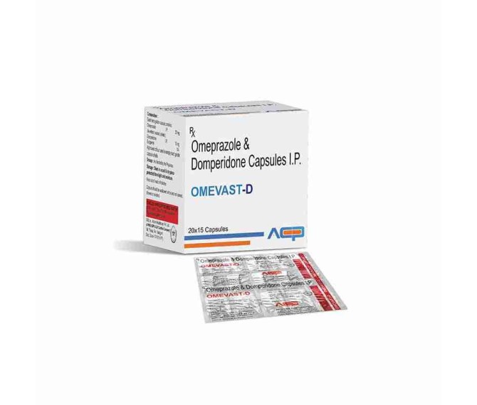 Composition : Omeparazole 20 Mg + Domperidone 10 Mg Packing : 20*15 Type : Strip Packing Detail:-OMEVAST D by Asto Care Pharmaceutical provides fast relief from acidity, bloating, and indigestion with the power of Omeprazole and Domperidone.