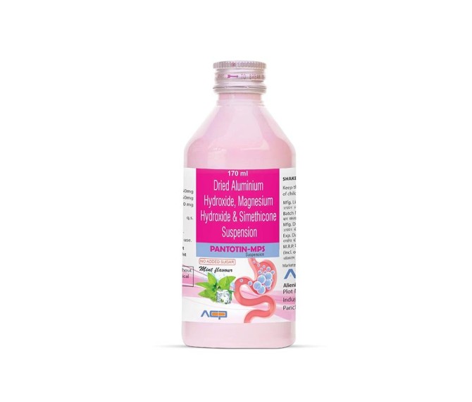 Composition : Aluminium Hydroxide 250 Mg + Megisium 250 Mg + Dimethicone 50 Mg Packing : 70*1 Type : Mono Pack 170 ml Detail:-PANTOTIN MPS by Asto Care Pharmaceutical provides quick relief from acidity, gas, and heartburn with a soothing antacid formula.
