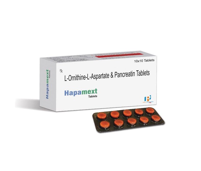 Composition : L-ornithine L-aspartate 150 Mg + Pancreatin 100 Mg Packing : 10*10 Type : Blister Detail:-HAPAMEXT by Indizen Pharma – Supports liver health, detoxification, and overall well-being for a healthier lifestyle.