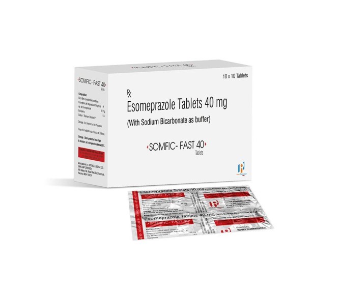 Composition : Esomeprazole 40 Mg With Sodium Bicarbonate Buffer Tablet Packing : 10*10 Type : Strip Packing Detail:-SOMFIC FAST 40 – Fast relief from muscle pain and spasms. Trusted solution by Indizen Pharma.
