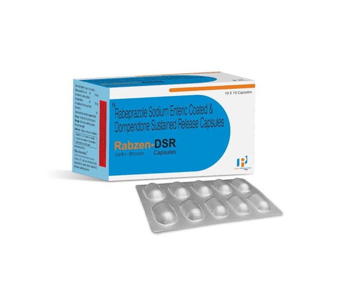 Composition : Rabeprazole 20mg (Ec)+ Domperidone 30mg (Sr) Cap Packing : 20*10 Type : Alu Alu Detail:-RABZEN DSR – Long-lasting relief from acidity and ulcers. Trusted and effective by Indizen Pharma.