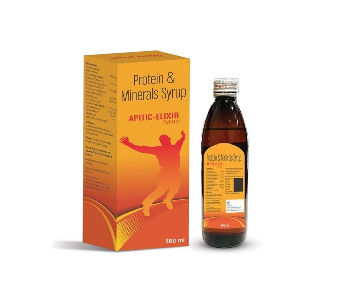 Composition : Iodised Peptone 0.322 Mg + Magnesium Chloride 6.67 Mg + Magnese Sulphate 1.33 Mg + Sodium Metavananadate 0.22 Mg + Zinc 10.71 Mg + Cyanacobalamin 0.167 Mcg + Nicotinamide 3.33 Mg Packing : 300 Ml Type : Mono Pack 300 ml Detail:-Apitic Elixir by Indizen Pharma – boosts immunity, supports overall health, enhances energy, and helps maintain a strong and healthy body naturally