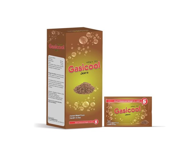 Composition : Fast Relief From Acidity ( Jeera Flavour ) Same Like Eno Packing : 1*50 Type : mono Detail:-Gasicool Jeera – Herbal digestive aid from Indizen Pharmaceutical for relief from indigestion, gas and bloating.