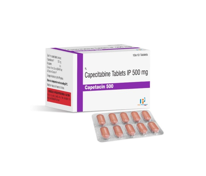 Composition : Capecitabine 500 Mg Packing : 10*10 Type : Alu Alu Detail:-CAPETACIN 500 – Capecitabine 500 mg oral tablet for cancer therapy (colorectal / breast). Use under medical supervision.