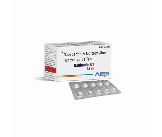 Composition : Gabapentin 400 Mg + Nortriptyline 10 Mg Packing : 10*10 Type :  Alu Alu Detail:-Gabimain‑NT Tablet – a combination of Gabapentin and Nortriptyline for effective neuropathic pain relief. Quality pharmaceutical product by Asto Care Pharma.