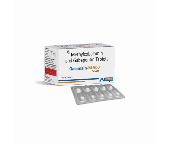 Composition : Gabapentin 300 Mg + Methylcobalamin 500 Mcg Packing : 10*10 Type :  Alu Alu Detail:-Explore Gabimain-M 500, a combination of Gabapentin 500 mg and Methylcobalamin from Asto Care Pharma for nerve pain relief and neurological support.