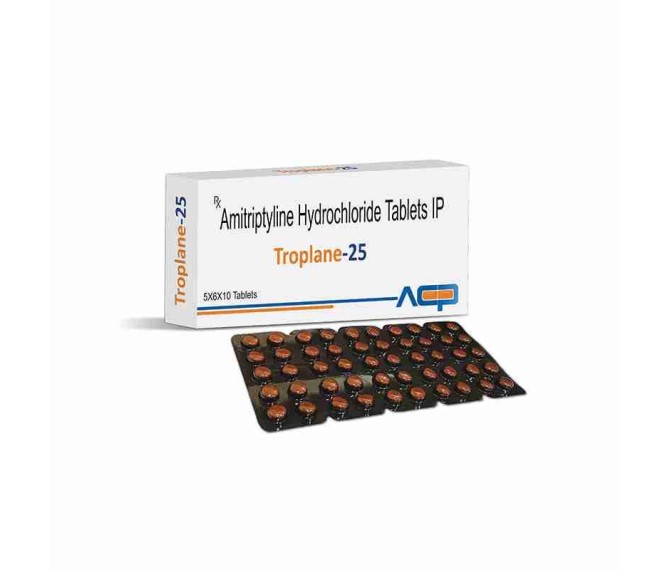 Composition : Amitriptyline Hcl 25 Mg Packing : 30*10 Type : Blister Detail:-Troplane 25 Tablet with Amitriptyline 25 mg for depression, nerve pain and mood support. Quality product by Asto Care Pharma.