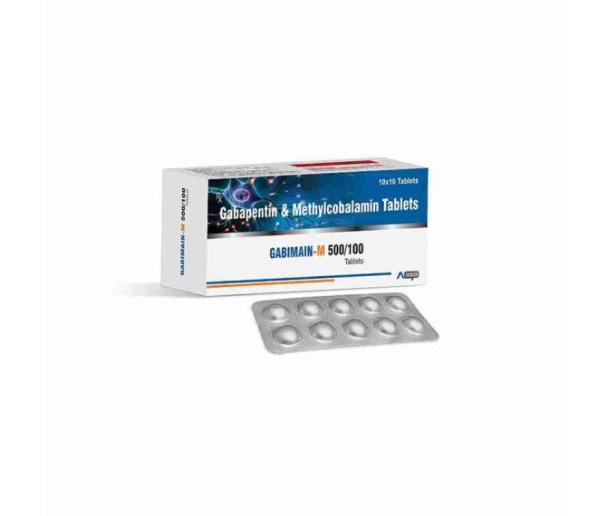 Composition : Gabapentin 100 Mg + Methylcobalamine 500 Mcg Packing : 10*10 Type : Alu Alu Detail:-Buy GABIMAIN M 500/100 – combination of Gabapentin 100 mg & Methylcobalamin 500 mcg for neuropathic pain relief