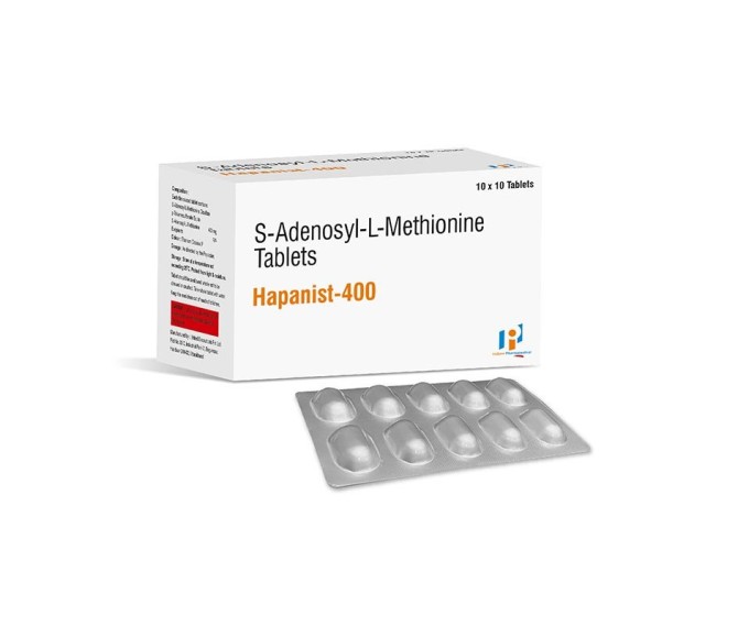 Composition : S-adenosyl Methionine Methionine 400 Mg Packing : 10*10 Type : Alu Alu Detail:-HAPANIST 400 by Indizen Pharma – S-Adenosyl Methionine (SAMe) 400 mg for support in mood, liver & joint wellness.