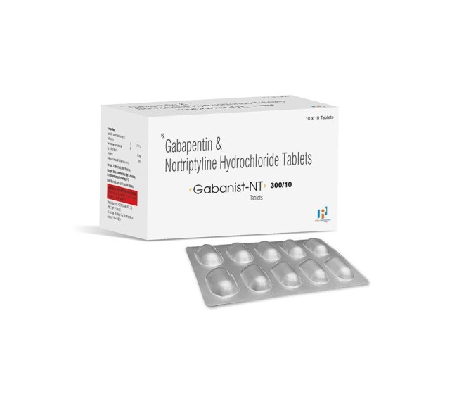 Composition : Gabapentin 300 + Nortriptyline 10 Mg Packing : 10*10 Type : Alu Alu Detail:-GABANIST NT 300/10 by Indizen Pharma – for neuropathic pain relief and nerve health.