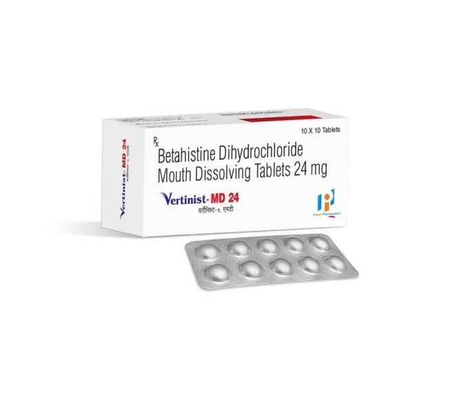 Composition : Betahistine 24 Mg Packing : 10*10 Type : Alu Alu Detail:-VERTINIST MD 24 by Indizen Pharma contains Betahistine 24 mg — for vertigo and inner-ear balance support.