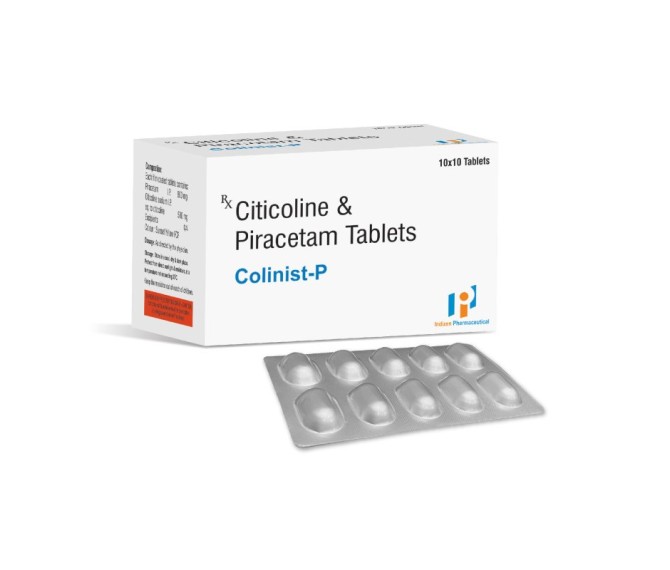 Composition : Citicolin 500 Mg + Piracetam 800 Mg Packing : 1 10*10 Type : Alu Alu Detail:-COLINIST-P by Indizen Pharma combines Citicoline 500 mg and Piracetam 800 mg to support cognitive recovery and nerve health in the neuro-psychiatric range.