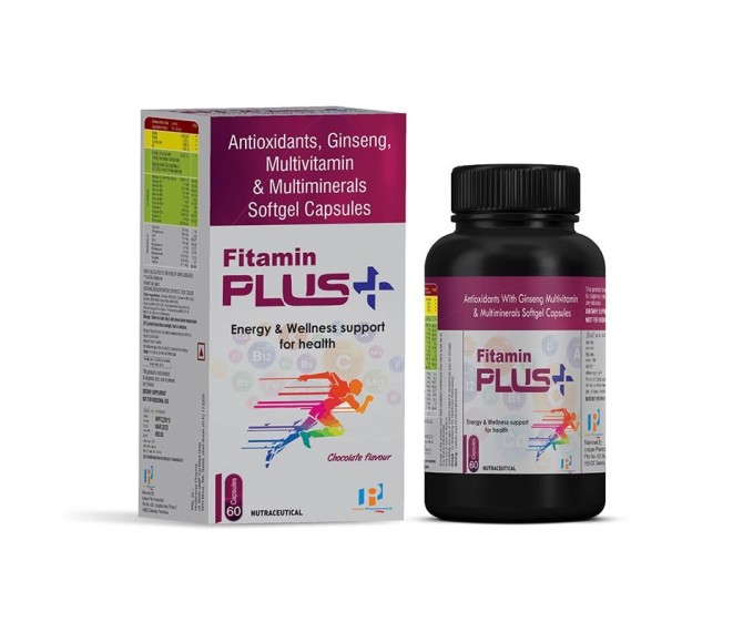 Composition : Multivitamin + Multiminerals + Ginseng ( Same Like Revital Ginseng 212.5 Mg) Loose Bottle 60 Capsules Packing : 1 60*1 Type : Bottle Pack Detail:-Discover FITAMIN-PLUS by Indizen Pharma — a powerful formula combining multivitamins, multiminerals and ginseng for overall wellness and vitality.