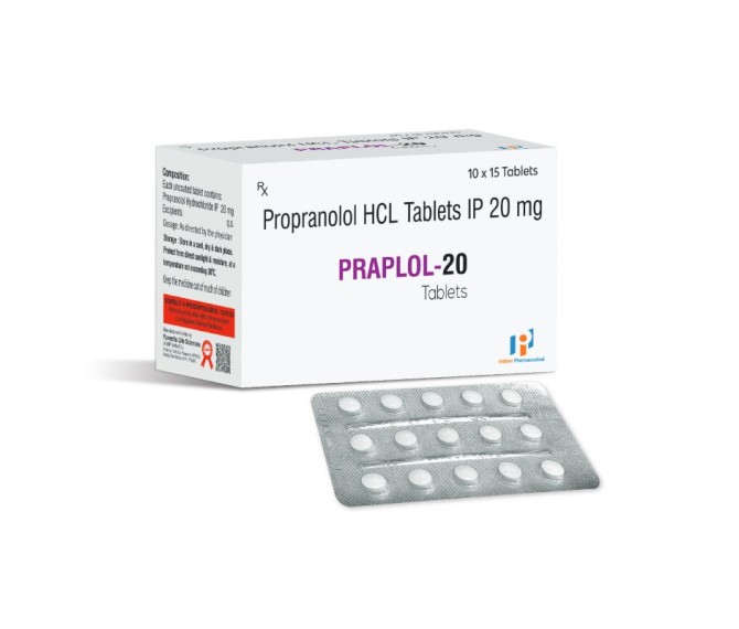 Composition : Propranolol 20 Mg Packing : 1 10*15 Type : Blister Detail:-Praplol 20 by Indizen Pharma – Propranolol 20 mg tablet for cardiovascular, migraine & anxiety‑related uses.