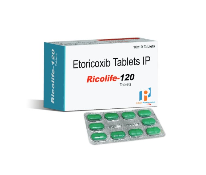 Composition : Etoricoxib 120 Mg Packing : 1 10*10 Type : Blister Detail:-Ricolife 120 by Indizen Pharma – Etoricoxib 120 mg tablet for relief of pain & inflammation in arthritis and musculoskeletal disorders.