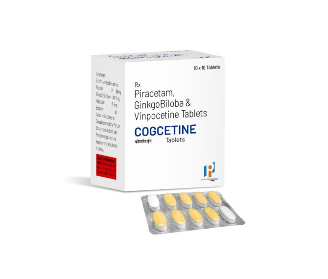 Composition : Ginkgo Biloba 60 Mg + Piracetam 800 Mg + Vinpocetine 5 Mg Packing : 10*10 Type : Blister Detail:-COGCETINE by Indizen Pharma enhances memory, focus, and cognitive performance for better brain health.