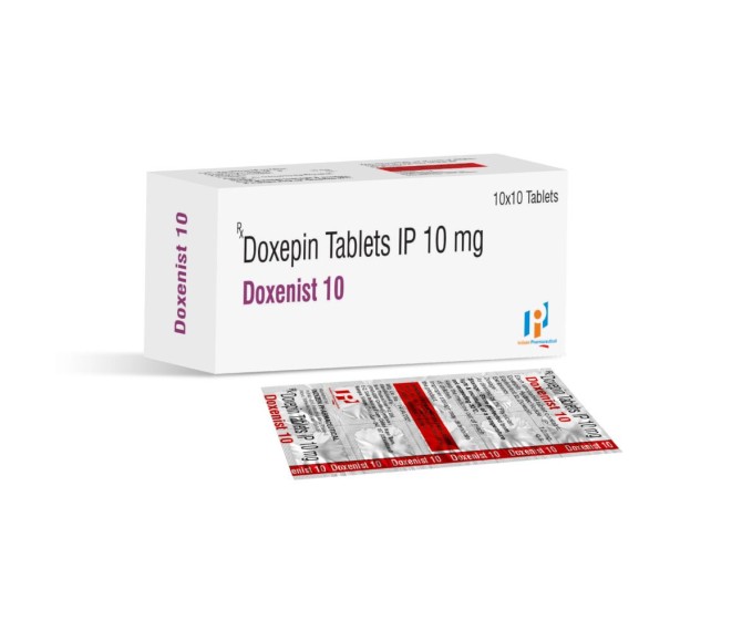 Product Name:-DOXENIST 10 Composition:- DOXEPIN 10 MG Packing:-10*10 Type:-STRIP PACKING Detail:-DOXENIST 10 tablets are formulated to support effective management of neurological and mental health conditions with reliable therapeutic action.