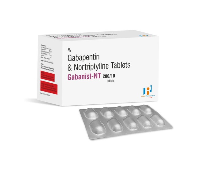Product Name:-GABANIST NT 200/10 Composition:- GABAPENTIN 200 + NORTRIPTYLINE 10 MG Packing:-10*15 Type:-ALU ALU Detail:-GABANIST NT 200/10 Tablet is used for effective management of neuropathic pain, helping reduce nerve pain and improve patient comfort.