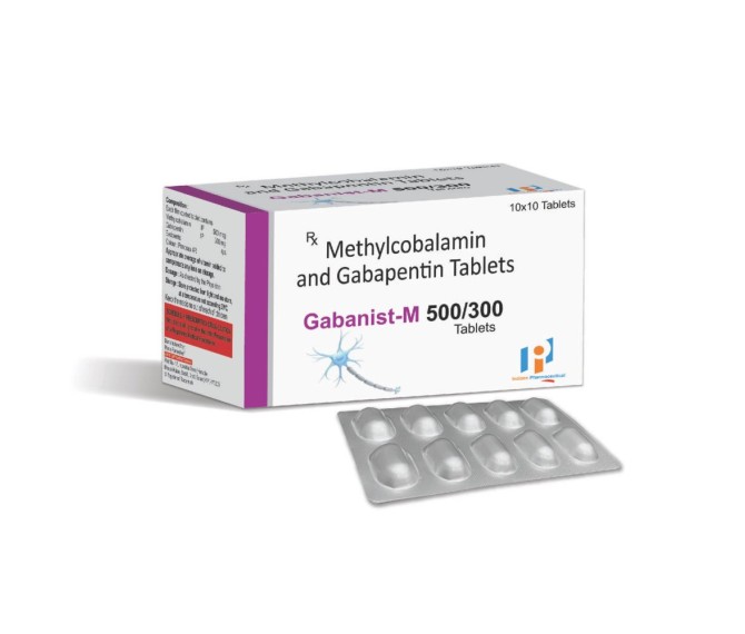 Product Name:-GABANIST M 500/300 Composition:- GABAPENTIN 300 MG + METHYLCOBALAMINE 500 MCG Packing:-10*10 Type:-ALU ALU Detail:-GABANIST M 500/300 offers reliable treatment for nerve pain with a balanced combination for enhanced pain relief and patient comfort.