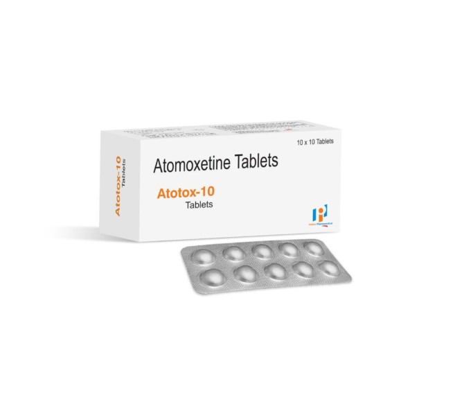 Product Name:-ATOTOX 10 Composition: ATOMOXETINE 10 MG Packing:-10*10 Type:-ALU ALU Detail:-ATOTOX 10 Tablet is an antihistamine medicine used to relieve allergy symptoms such as sneezing, itching, watery eyes, and runny nose