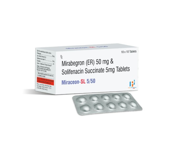 Composition : Mirabegron 50 Mg + Solifenacin 5 Mg Packing : 10*10 Type : Alu Alu Detail:-Mirabegron 50 Mg + Solifenacin 5 Mg Tablets works by activating the receptor in the bladder, causing the bladder muscles to relax.