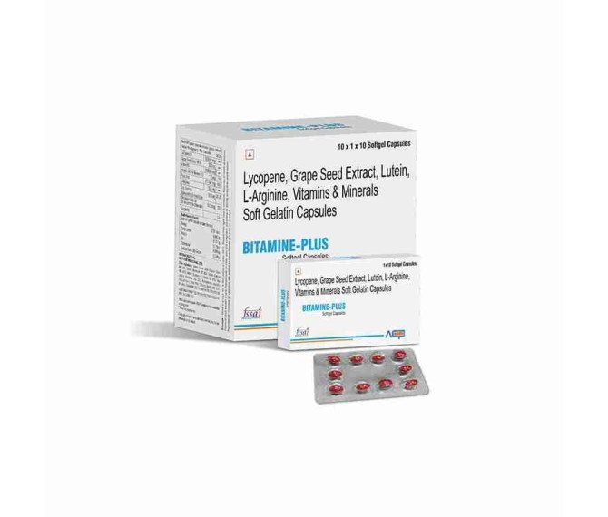 Composition : Multivitamin + Multiminerals +lycopene+ L-arginine Packing : 10*1*10 Type : Blister Detail:-Support your health daily with Bitamine Plus, a premium multivitamin and mineral supplement by Asto Care Pharma.