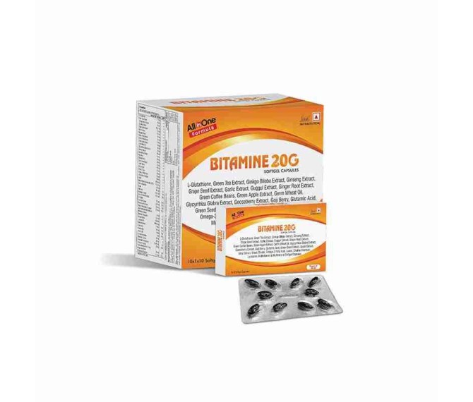 Composition : Grape Seed Extract + Garlic Extract + Green Cofee Beans Packing : 10*1*10 Type : Blister Detail:-Bitamine 20g is a convenient multivitamin sachet designed to support daily energy, immunity, and overall wellness with essential vitamins and nutrients