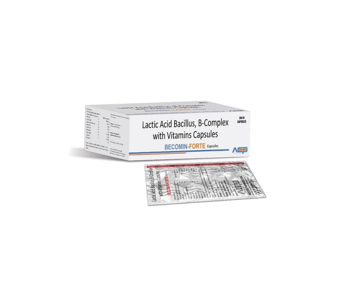 Composition : B-complex, Lactic Acid Bacillus , With Vitamins Capsules Packing : 20*10 Type : Strip Packing Detail:-Becomine Forte is a high-strength vitamin B complex supplement designed to support energy metabolism, nerve health, and overall vitality.
