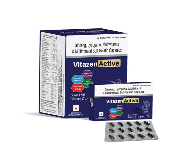 Composition : Multivitamin+ Antioxidant + Ginseng + Lycopene Packing : 10*1*15 Type : Blister Detail:-Vitazen Active by Indizen Pharma – multivitamin and antioxidant tablets enriched with ginseng and lycopene to support overall health, immunity and vitality. Premium nutritional supplement.